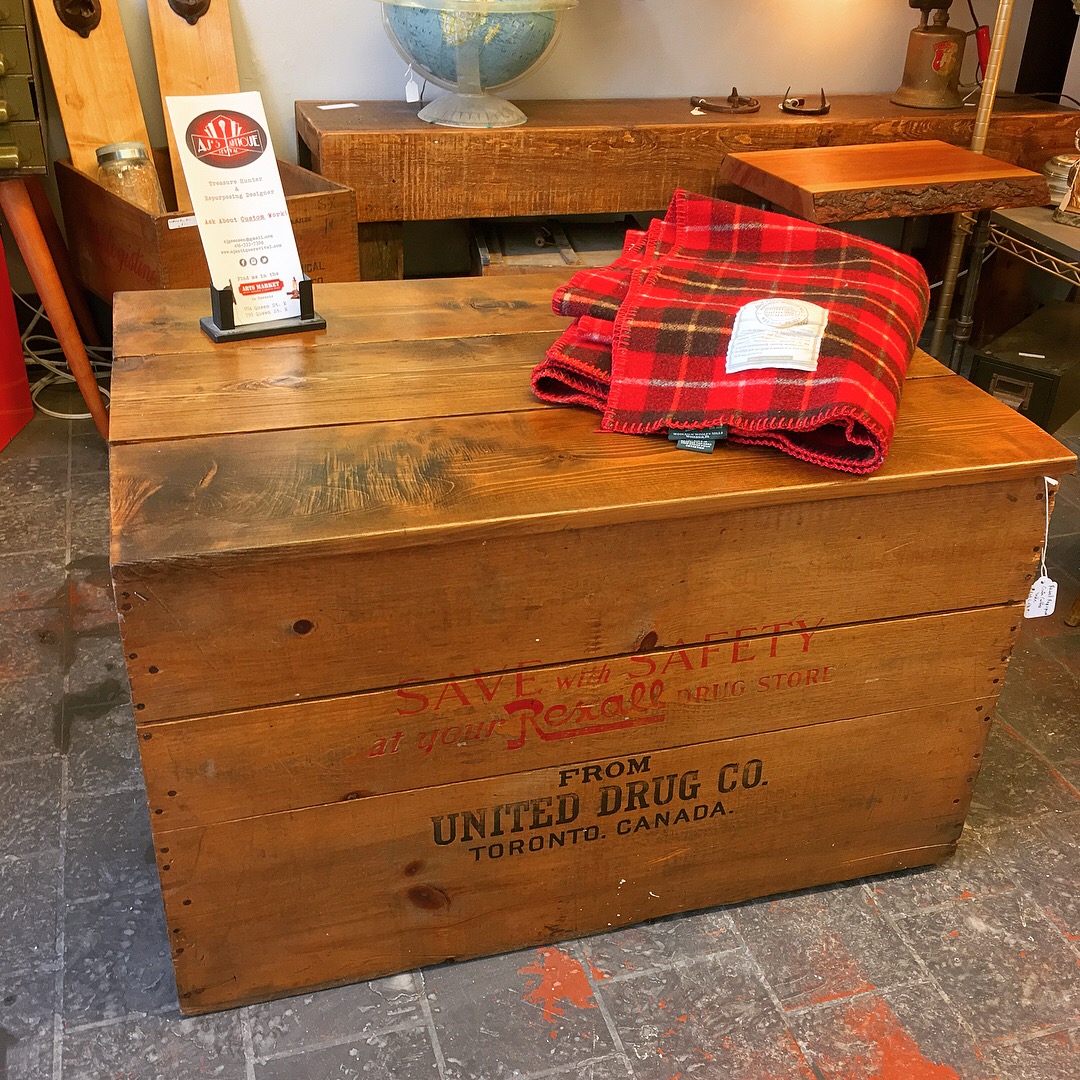 I’ve always got a great selection of wood crates, usually with nice original advertising and lettering on them. Stop by the East end Arts Market locations, or drop me a line and let me know what you’re looking for.